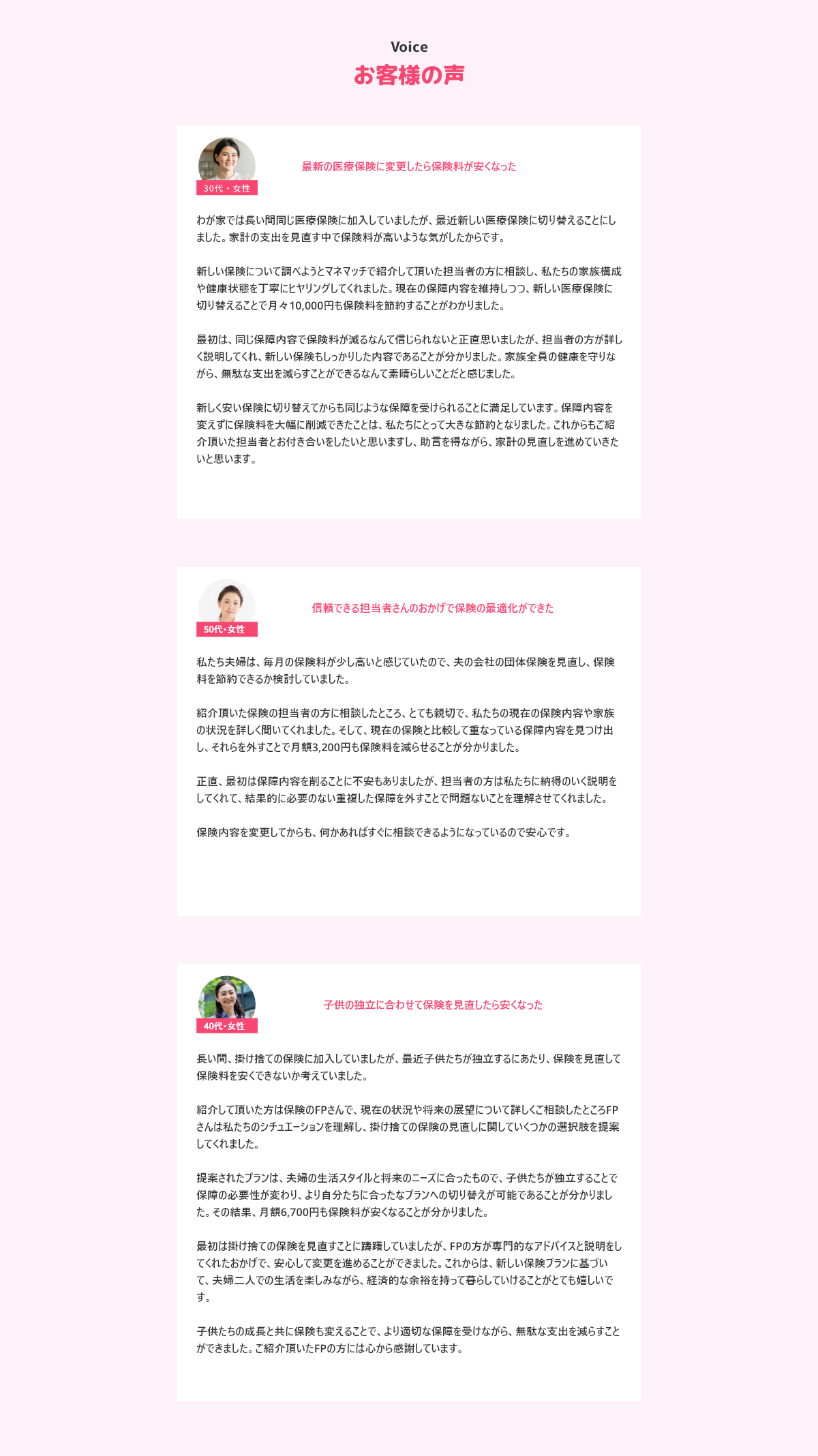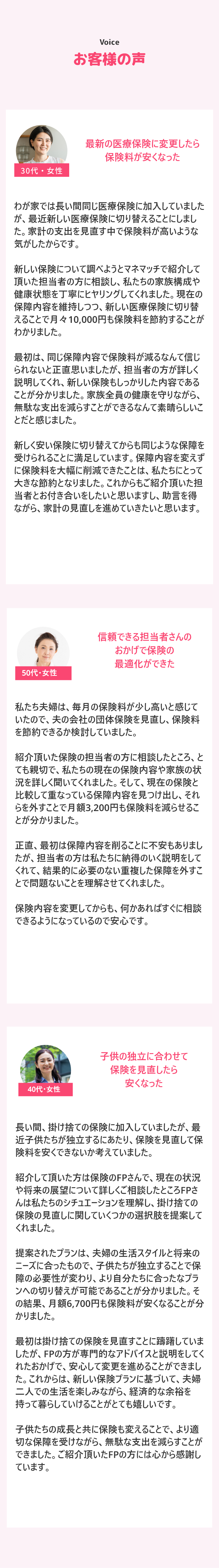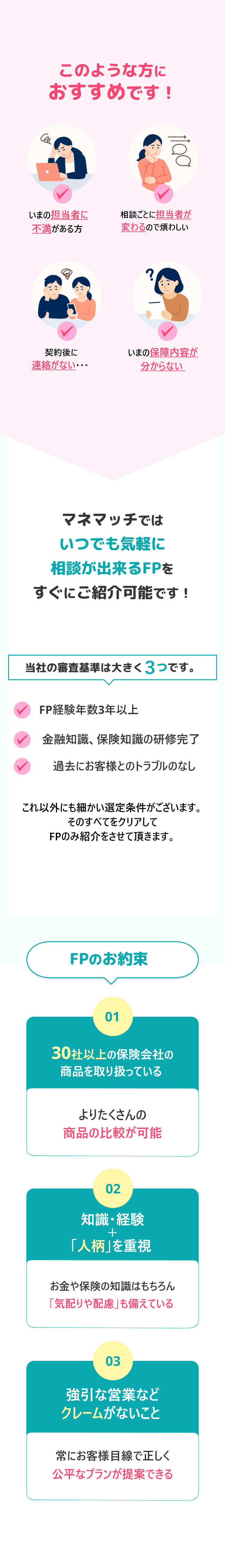 - 民間の生命保険以外( 「共済」「かんぽ」「銀行」など )のご相談、または損害保険のみのご相談は対象外となります。
